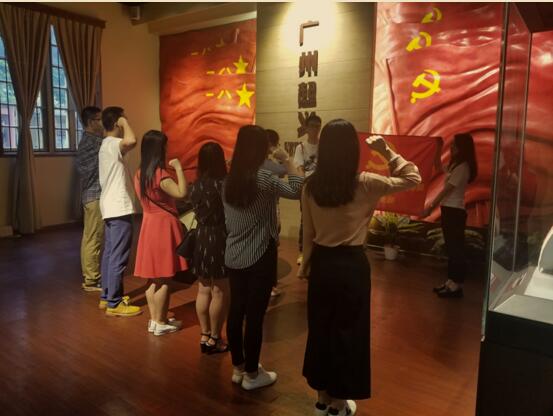 2018年5月4日上午,正值五四青年节之际,纪念马克思诞辰200周年大会在北京人民大会堂隆重举行,习近平总书记在会上发表了重要讲话。他强调,我们纪念马克思,是为了向人类历史上最伟大的思想家致敬,也是为了宣示我们对马克思主义科学真理的坚定信念。为了响应党和国家的号召,5月4日下午,明胜m88官网研究生党支部在广州起义纪念馆开展党组织学习活动。明胜m88官网研究生党支部在支部书记姚林曼的带领下,共有12名党员和预备党员以及12名入党积极分子参加了当天的活动。流程为:在讲解员带领下参观纪念馆,奏唱国歌,党支部全体成员进行宣誓,党员代表罗忍章发表感言,党支部成员集体分享马克思《青年在选择职业时的考虑》一文的读后感,党支部书记姚林曼总结发言,最后大家进行合影留念。