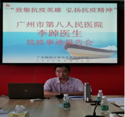 9月22日下午,在北二1031明胜m88官网会议室,学院党总支组织全体师生党员,认真听取了广州市第八人民医院内儿科党支部书记李踔医生的抗疫事迹报告会,李踔医生因参加抗疫被授予“广东省青年五四奖章”。
