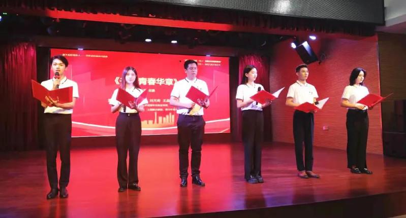 在“诗歌朗诵”环节,6名学生代表以百年前、建党、革命、新时代为时间坐标,通过朗诵的方式,讲述一代代杰出青年们用青春铸就民族振兴的绚丽华章。“立大志、明大德、成大才、担大任,让青春在为祖国为民族为人民为人类的不懈奋斗中绚丽绽放!”学生们深情昂扬的诵读声回荡会场,震撼人心,涤荡灵魂。
