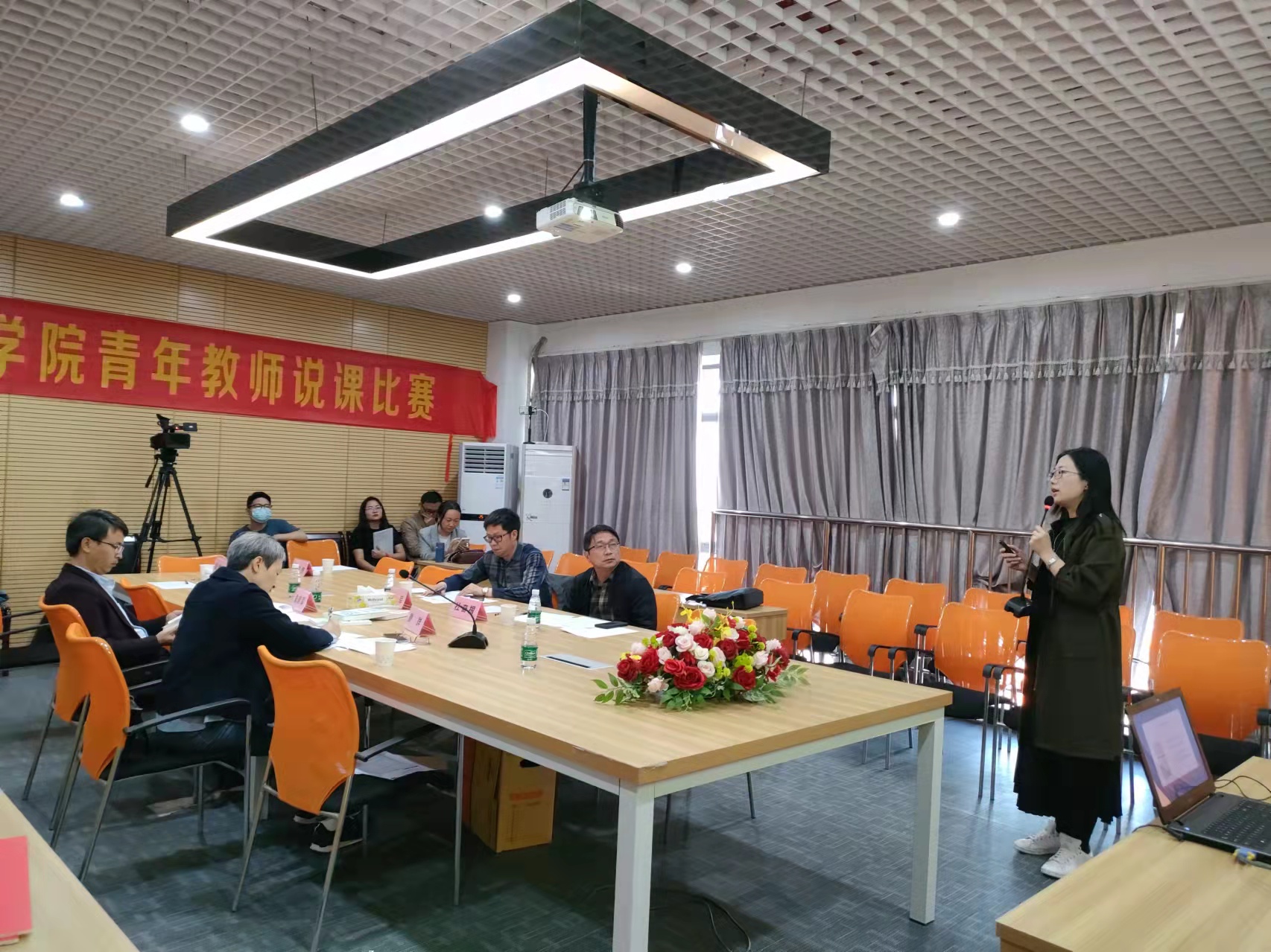 11月9日下午,明胜m88官网举行“党史学习教育融入思政课教学”说课比赛。中山大学明胜m88官网院长助理童建军教授,广东省教育厅名师工作室负责人、番禺职业技术学院明胜m88官网院长曹群教授,明胜m88官网教务处处长张军教授,广东省教育厅名师工作室负责人、明胜m88官网明胜m88官网杜奋根教授等4位专家担任比赛评委,明胜m88官网院长袁继红主持比赛,学院青年教师现场观摩。