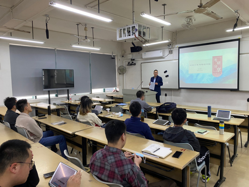 曾志辉从自身考研经历、考研目标以及备考建议三方面进行深入讲解。与同学们分享了自己若干备考的奋斗镜头。从通宵教室到裹被苦学,从互帮互助到你追我赶,从坚定选择到硕果累累,通过一段段真实的奋斗经历,指出共同奋斗、风雨兼程是考研成功的关键所在。