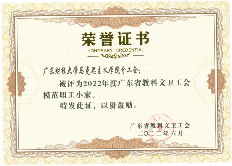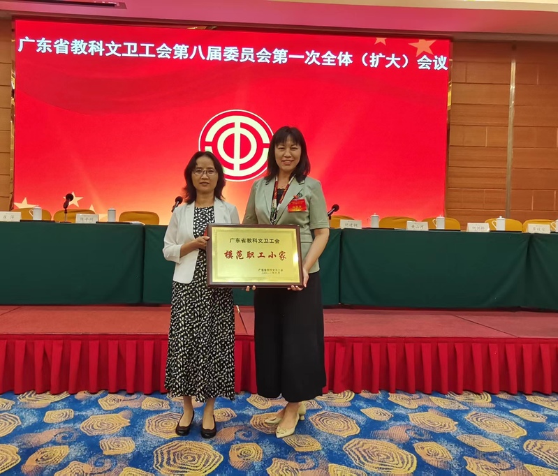 近日,广东省科教文卫工会第八届委员会第一全体(扩大)会议在广州召开。会上,省教科文卫工会领导为获得“模范职工之家”“模范职工小家”“优秀工会工作者”的单位代表和个人颁奖。明胜m88官网明胜m88官网分工会获得“模范职工小家”荣誉,校工会曾艳获得“优秀工会工作者”荣誉。