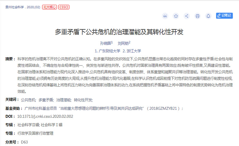 摘要:科学的危机治理离不开对公共危机的正确认知。在多重风险的交织效应下,公共危机显露出常态化趋势的同时存在多重性矛盾:社会性与制度性诱因结合、不确定性与合规律性统一、突发性与渐进性共存。公共危机对国家治理具有两面效应:既有破坏性损害,又具建设性潜能。在国家治理体系和治理能力现代化深入推进中,公共危机具有组织变革、制度创新、体系重塑和凝聚共识等治理潜能。转化性开发公共危机的治理潜能,必须拥有历史高度的大局观,从提升危机治理能力现代化着眼,在科学认识危机成因前提下对危机防范疏漏问题进行制度性检视,在深刻总结危机规律基础上将危机压力转化为完善国家治理体系的动力,在系统把握危机矛盾基础上将中国特色的制度优势转化为危机治理效能。