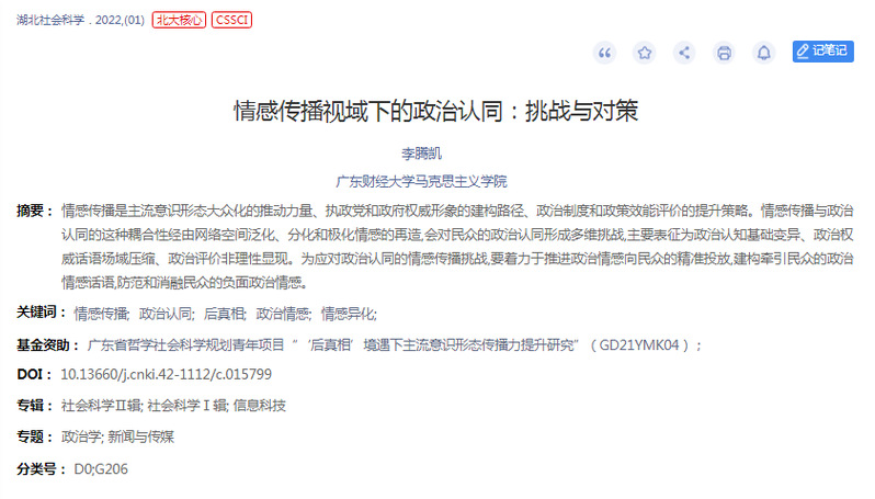 摘要:情感传播是主流意识形态大众化的推动力量、执政党和政府权威形象的建构路径、政治制度和政策效能评价的提升策略。情感传播与政治认同的这种耦合性经由网络空间泛化、分化和极化情感的再造,会对民众的政治认同形成多维挑战,主要表征为政治认知基础变异、政治权威话语场域压缩、政治评价非理性显现。为应对政治认同的情感传播挑战,要着力于推进政治情感向民众的精准投放,建构牵引民众的政治情感话语,防范和消融民众的负面政治情感。