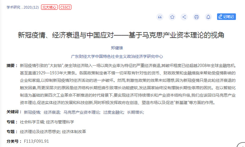 摘要:新冠疫情引致的大封锁,使全球经济陷入一场以高失业率为特征的严重经济衰退,其破坏程度已经超越2008年全球金融危机,甚至直逼1929—1933年大萧条。各国政策制定者不惜一切采取有针对性的货币、财政政策和金融措施来帮助受疫情影响的企业和家庭,以抑制新冠疫情对经济活动的进一步破坏。然而,刺激性政策的效果未如理想,因为新冠疫情只是此轮经济衰退的触发因素,而更深层次的原因是经济结构长期扭曲引致增长动能疲软,发达国家始终没有摆脱长期性停滞的困扰。在以智能化制造为基础的第四次工业革命不断推进的时代背景下,要实现经济可持续增长和产业资本结构升级,我们应该回归马克思产业资本理论,促进实体经济的发展和科技创新,同时积极发挥政府在创造、塑造市场以及促进新基建等方面的作用。