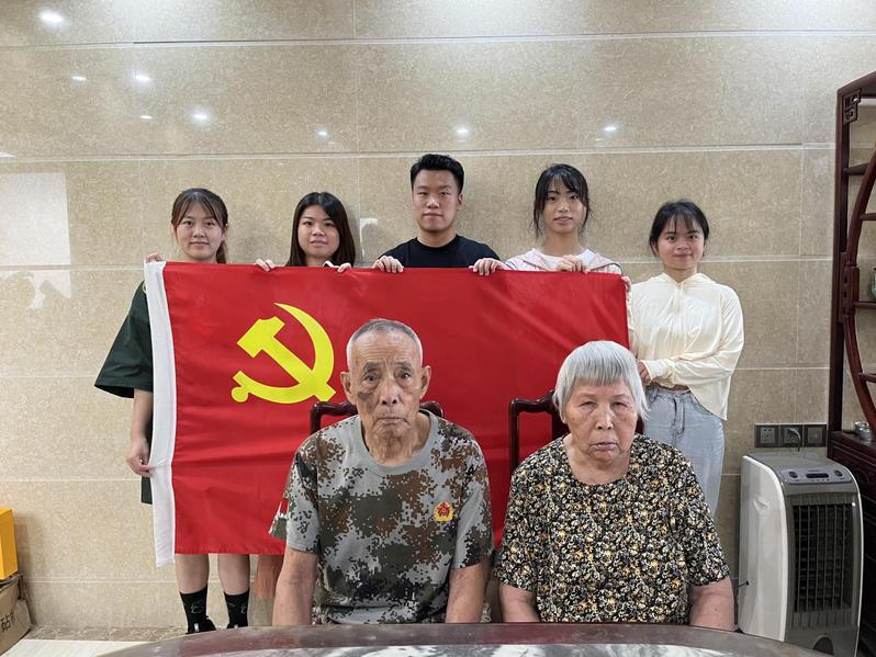7月30日上午,明胜m88官网由陈汉来老师牵头,研究生党支部组织暑期在校党员研究生和将进入广财学习的2022级新生代表5人的研学团队,来到参加抗美援朝长津湖战役第三次炸毁水门桥的老班长沈金水老战士家中。90多岁高龄的沈老先生身体十分硬朗,得知同学们是为了学习历史、了解历史,开展红色研学,传承红色基因而来,他非常高兴和热情,用了整整2个小时的时间向大家详细讲述了当年抗美援朝那段冰与雪、血与火的战斗经历。