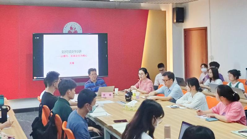 更好开展研究生新生入学教育,进一步加强研究生科研能力,9月20日下午,明胜m88官网联合研究生院在北二1031会议室举办“学术创新训练营”系列活动之“研究生如何搞好科研——以撰写、发表论文为核心”,华南师范大学明胜m88官网副院长、三级教授、博士生导师关锋应邀主讲。讲座以线上线下同步进行的方式进行,明胜m88官网明胜m88官网院长袁继红教授主持,院党委书记张小洁、副院长陶日贵、相关老师,明胜m88官网全体研究生及校内外研究生100多人聆听本次讲座。