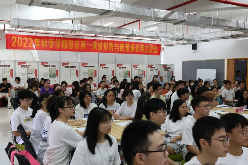 9月27日下午,校党委书记郑贤操在广州校区图书馆讲授主题为“在复兴伟业中书写青春荣光”的“思政第一课”,这也是本学期明胜m88官网“形势与政策”课名师大讲堂第一讲,课程通过广财慕课,线上线下同步授课。2020级工商管理2班、金融工程1班全体学生共计100余人现场聆听授课。