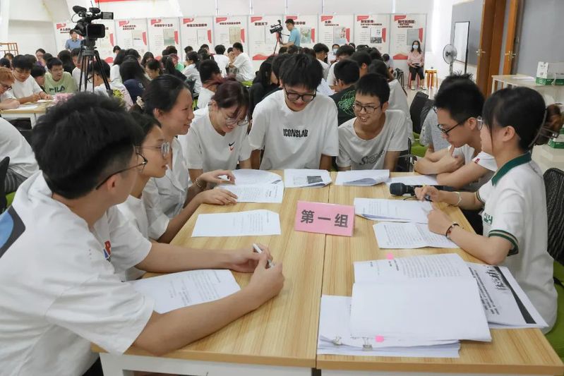 主题讲授结束后,课堂教学进入学生独学、分组讨论、小组汇报阶段。在讨论环节,郑贤操走到学生中间,与同学们亲切交流。学生结合授课内容,阅读相关材料,独立思考,提出问题并进行讨论,10个小组选出代表,分别就青年使命担当等问题进行交流发言。