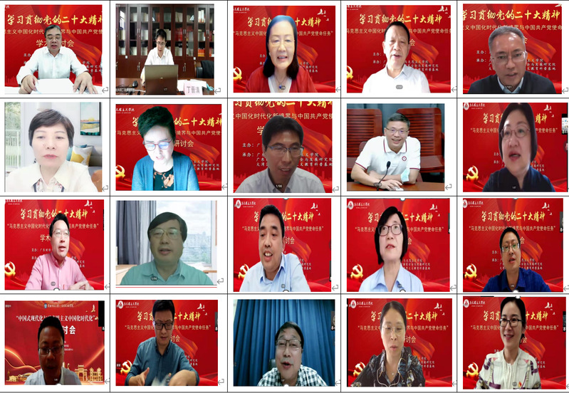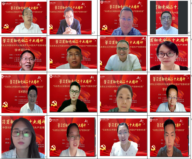 11月22日,由明胜m88官网主办,明胜m88官网、国家安全与发展研究院、大湾区青年马克思主义教育科普基地共同承办的“学习贯彻党的二十大精神暨‘马克思主义中国化时代化新境界与中国共产党使命任务’”学术研讨会成功举办。来自中国社会科学院、北京师范大学、中山大学、华南理工大学、江西师范大学、天津师范大学、华南师范大学等国内19所高等院校和社科院的专家学者、青年学子300余人齐聚线上,围绕会议主题展开深入研讨和交流。