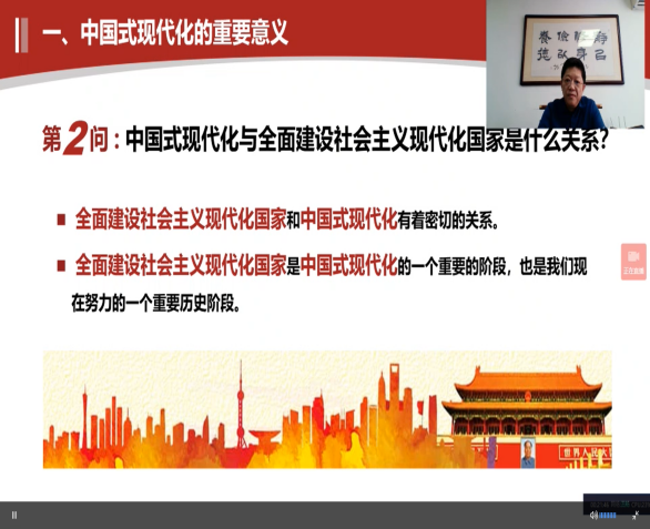 刘祖华则从中国式现代化与中国式现代化道路、全面建设社会主义现代化国家、全面建成社会主义现代化强国的关系入手,澄清概念,阐述中国式现代化的重要意义和基本特征,最后从九个方面详细介绍了党的二十大报告关于推进中国式现代化的战略部署。