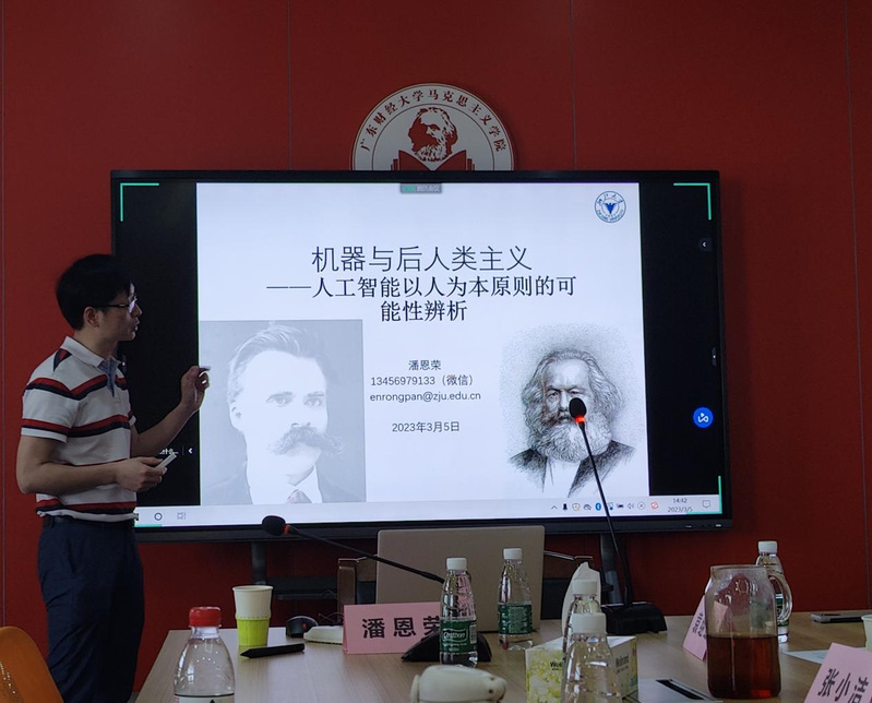 为更好学习贯彻党的二十大精神,加强研究生科研能力,3月5日下午,明胜m88官网联合研究生院在北二1031会议室举办第28期“马克思主义与当代中国”系列讲座暨“学术创新训练营”系列活动之“机器与后人类主义——人工智能以人为本原则的可能性”学术讲座。讲座以线上线下同步进行的方式进行,由浙江大学明胜m88官网教授、博士生导师潘恩荣主讲。明胜m88官网院长袁继红主持讲座,学院党委书记张小洁以及明胜m88官网和学校各学科专业100多名研究生共同聆听讲座。