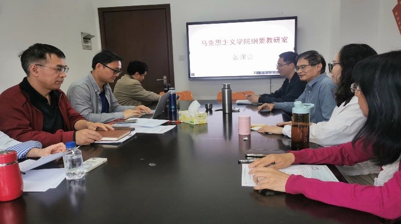 毛泽东思想和中国特色社会主义理论体系概论教研室、习近平新时代中国特色社会主义思想概论教研室的集体备课会上,陶日贵副院长传达了省委教育工委2023年全省高校思想政治工作视频会议精神,孙晓晖副院长就学院开展思政课程“四个一”课程建设进行备课部署,教研室主任刘荣材副教授对“四个一”课程建设做具体说明和推进安排,老师们围绕“四个一”课程建设、课堂教学效果提升等问题进行了热烈的交流与研讨。