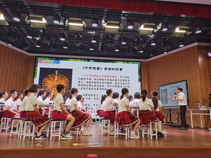 三水区实验小学李爵艺副校长展示了主题为《多元文化 多样魅力》的道德与法治课,从舞蹈、礼仪、建筑等方面带领同学们感受多姿多彩的世界文化,同学们积极参与课堂互动,与老师形成了良好交流,纷纷展示自己小组的讨论成果。