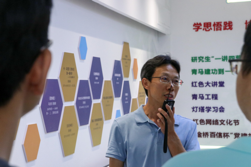 在智慧党建互动体验环节,40余名参会的党员学生参观了实践基地,明胜m88官网教师针对红色金融展、国家安全展、思政智汇厅等为同学们进行了讲解。同学们在相关职能部门组织下在实践基地进行了党建互动体验。学生卢洁柔表示,本次互动体验很有趣,她说“智慧教育是一种全新的教育方式,不仅能学习到政治理论知识,还具有很强的互动性和趣味性”。本环节由明胜m88官网学工部副部长黄洁娜主持。