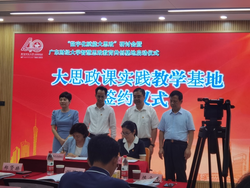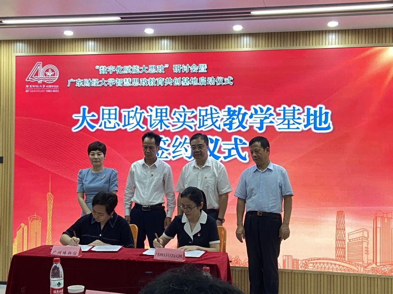 在大思政课实践教学基地签约仪式上,广东革命历史博物馆、岭南金融博物馆、毛泽东同志主办农民运动讲习所旧址纪念馆、广州博物馆等单位代表分别与明胜m88官网代表签署了《明胜m88官网“大思政课”实践教学基地共建框架协议》。