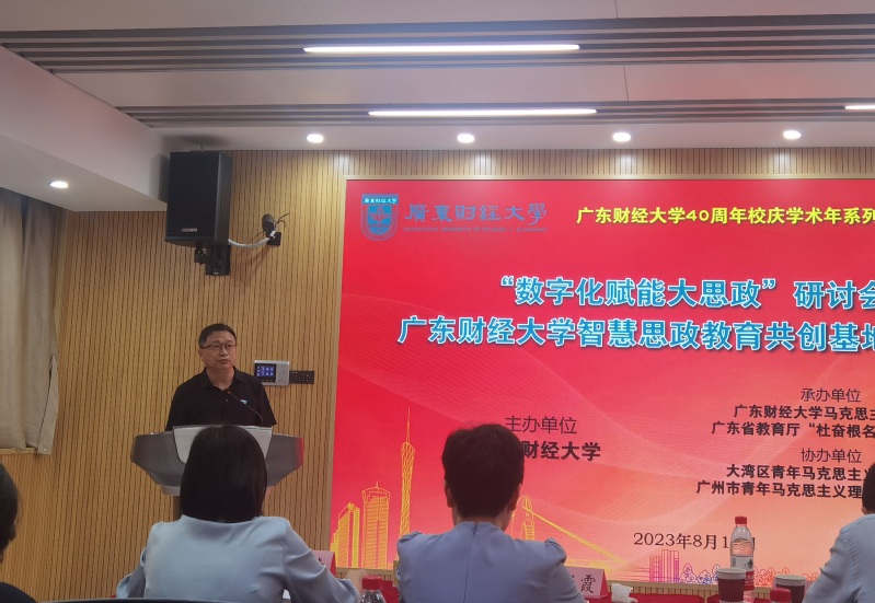“学校持续推进思政课教学改革,以‘思政长廊’‘智慧思政共创中心’建设为抓手,打造智慧思政教育共创基地.....”郑贤操介绍了开展主题教育以来,学校党委在通过加强数字化建设推动大思政课格局构建方面取得的成绩。他指出,学校积极打造智慧思政教育共创基地;开展数字广财建设,提高校园网络速度和稳定性,实现两校区无线网络全覆盖;建设110间智慧教室,为数字化赋能课程教学提供坚实的基础设施保障;依托网络平台采用对分课堂,开展万人同上“书记第一课”“校长第一课”和全体校领导同上一堂“形势政策课”;着力打造青年学“习”云基地、开展广财青年学思想微视频大赛等等,让思政课铸魂育人实效得到了明显提升。