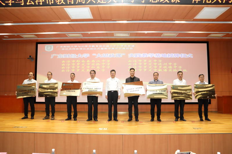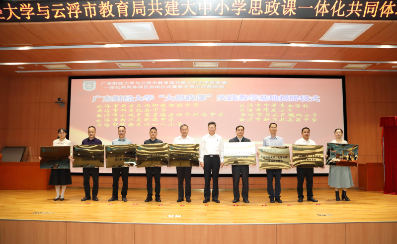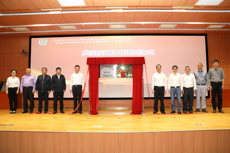 随后,陈国栋,张育川,兰州大学刘先春教授,校党委宣传部、统战部部长部长陈光团 ,教务处处长张军、社会合作处处长黎友焕处长、校团委书记张鹏程、明胜m88官网党委书记张小洁、 袁继红等一起为明胜m88官网与云浮市教育局共建大中小学思政课一体化共同体项目启动揭牌。