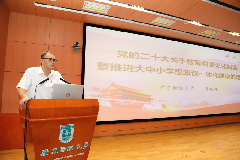 明胜m88官网明胜m88官网副院长、教授,国家级青年拔尖人才、省级青年文化英才孙晓晖围绕“党的二十大关于教育的重要论述暨推进大中小学思政课一体化建设的思考”做主旨报告。他指出,党的二十大报告设“实施科教兴国战略,强化现代化建设人才支撑”专章,是对教育事业作出重大战略部署,学习习近平总书记关于教育重要论述要有政治的高度、历史的厚度、教育的温度、哲学的深度。最后,深入浅出向大家介绍了大中小学思政课一体化建设的历史由来、科学内涵和基本要求。
