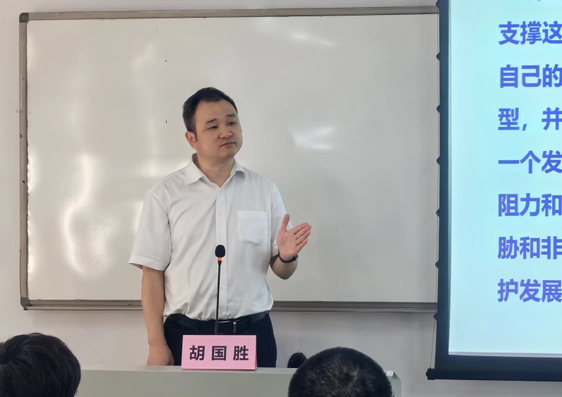 胡国胜认为,作为一个发展中大国,中国仍然面临多元复杂的安全威胁,遇到的外部阻力和挑战逐步增多,生存安全问题和发展安全问题、传统安全威胁和非传统安全威胁相互交织,维护国家统一,维护领土完整,维护发展利益的任务艰巨繁重。他从军队变革的时代背景、强军兴军开创新局面、习近平强军思想主要内容,和坚持走中国特色强军之路四个方面系统地为学生们讲授了习近平强军思想。