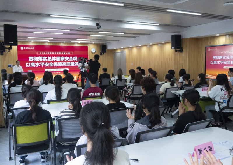 郑贤操从“总体国家安全观是什么”“为什么要贯彻落实总体国家安全观”“如何贯彻落实总体国家安全观”三个方面对总体国家安全观做了系统的讲解。他以一个个具体的案例为同学们展示了“国家利益拓展到哪里,国家安全的边界就跟进到哪里”,是动态发展的大安全,“国家安全不再是部分人干的事情,而是全国人民一起干的事情”。他强调“总体”是把握总体国家安全观的关键,要牢牢把握“统筹发展和安全”这根主线,坚持以人民安全为宗旨,以政治安全为根本,以经济安全为基础,以军事、科技、文化、社会安全为保障,以促进国际安全为依托,统筹外部安全和内部安全、国土安全和国民安全、传统安全和非传统安全、自身安全和共同安全,统筹维护和塑造国家安全。他指出,总体国家安全观在新时代维护国家安全的伟大斗争中应运而生、不断发展、创新不止。习近平总书记亲自担任中央国家安全委员会主席,亲自谋划、亲自部署、亲自指挥,推动贯彻总体国家安全观,有力开展维护和塑造国家安全的一系列现实斗争,成效卓著。他告诉同学们,我们学校正积极开展国家安全学科建设,目前已经有广东省第一个国家安全研究的硕士点以及广州市第一个“国家安全学”的重点学科,正努力推动国家安全学博士点申报工作。随后,他从“总体国家安全观是治国理政的基本方略”等三个方面深入阐释了为什么要贯彻落实总体国家安全观,并与同学们分享了如何贯彻落实总体国家安全观、以高水平安全保障高质量发展的有效路径。