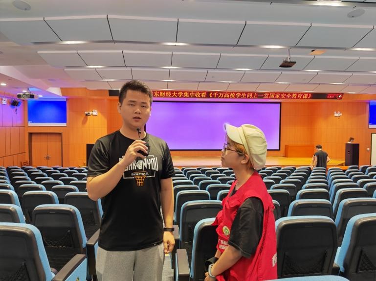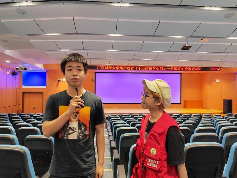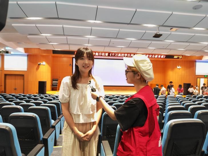 参与集中观看的学生共同聆听了北京师范大学教授汪明,上海财经大学教授曹啸,国防科技大学副教授赵云的直播授课,学着成长为一名主动自觉捍卫国家安全的卫士!观看结束后,部分学生应邀接受了采访。
