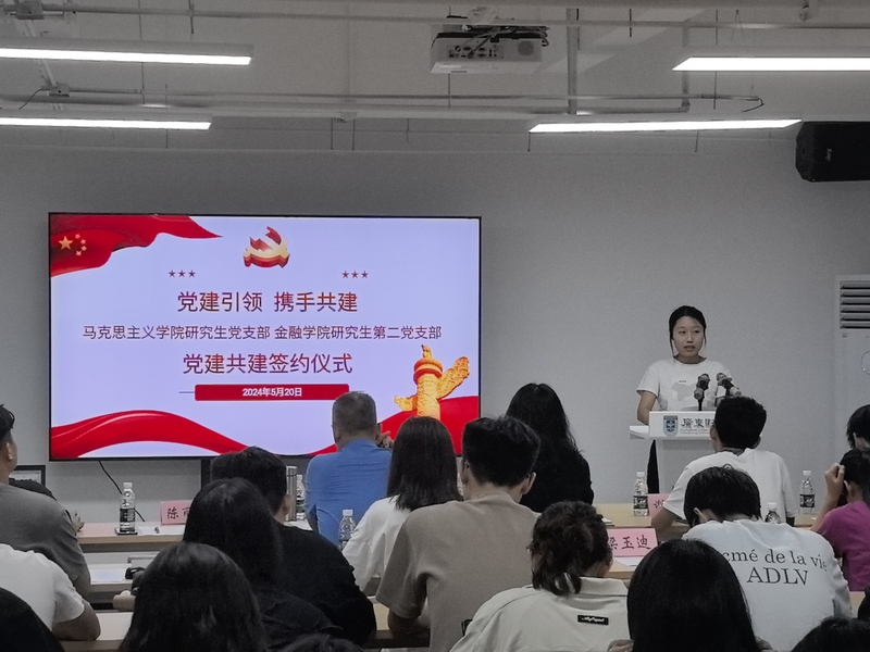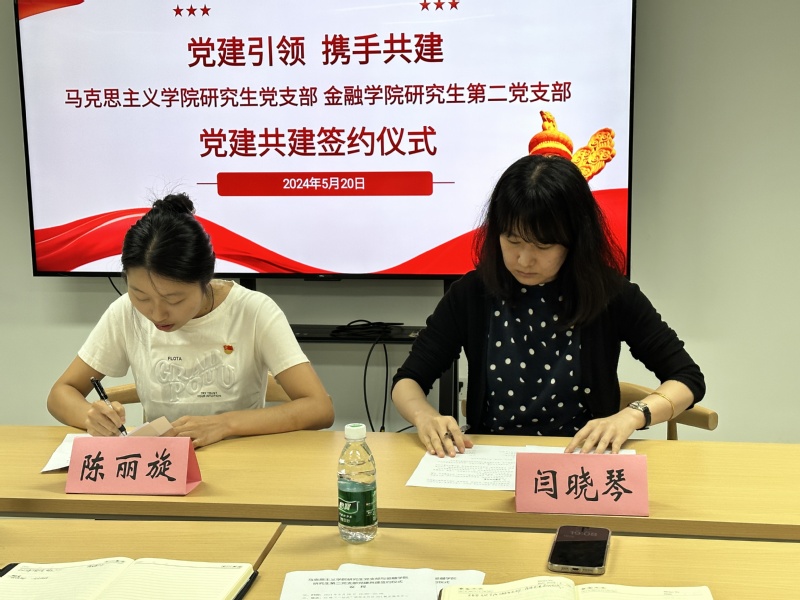 紧接着,在全体党员的共同见证下,明胜m88官网研究生党支部书记陈丽旋与金融学院研究生第二党支部书记闫晓琴正式签定《党组织结对共建协议书》。根据协议,双方党支部将在党内政治生活、组织生活、理论学习、社会实践、志愿服务等方面开展深度合作。
