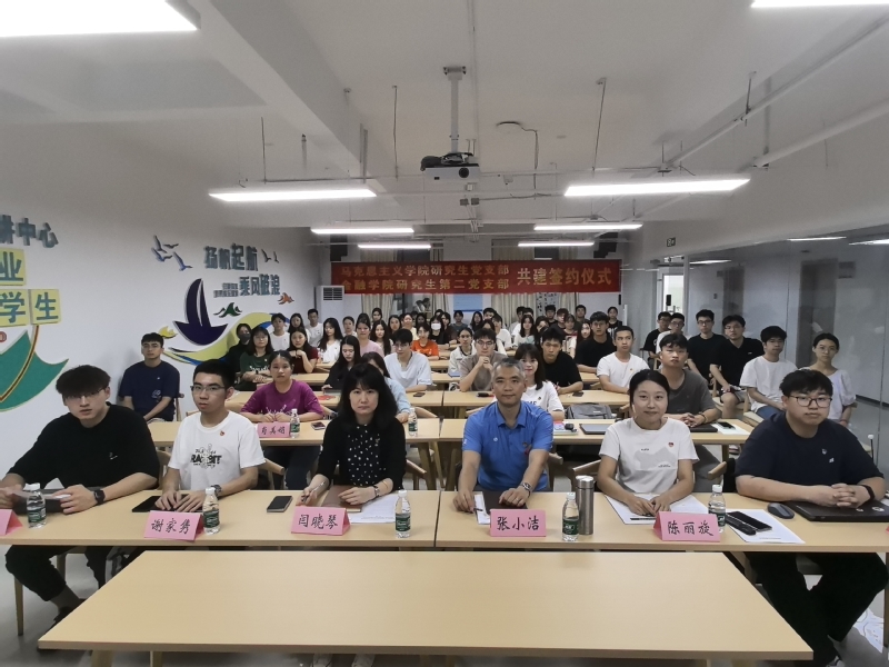 5月20日晚上,明胜m88官网研究生党支部与金融学院研究生第二党支部在33栋“一站式”研究生社区304活动室举行党建共建协议签约仪式。签约仪式由金融学院研究生第二党支部副书记刘缘主持,明胜m88官网党委书记张小洁、金融学院研究生第二党支部书记闫晓琴老师、明胜m88官网研究生党支部书记陈丽旋和全体党员研究生共50多人参加。