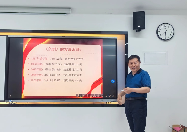 集中学习由学院教授委员会主任委员邱若宏教授做专题辅导,各位党委委员进行分享研讨。邱若宏以“严守党的纪律 做新时代合格党员”为领学主线,对《中国共产党纪律处分条例》的发展演进、主旨要义、主要内容进行了深刻阐释从党的纪律建设历史、党的纪律内容特点等方面进行细致领学。
