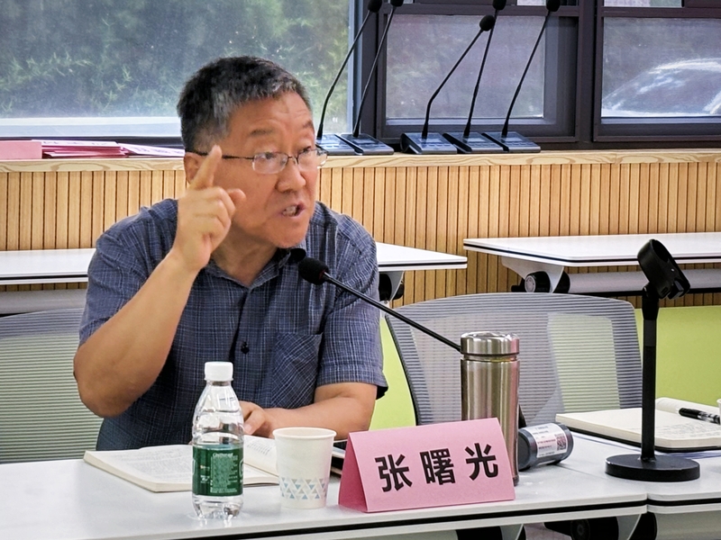 读书会伊始,张曙光对本次读书会主题及相关的阅读材料进行了简要讲解,并向师生提出“这份手稿为何取名‘德意志意识形态’?”、“这份手稿哪些内容体现了马克思、恩格斯初步提出的‘唯物史观’的基本内容?”、“马克思为什么强调‘世界历史’、‘普遍交往’?、“‘偶然的个人’与‘普遍的个人’有什么样的联系和区别?”等问题,以问题式导入法,带领大家充分进入文本并思考。在张教授的不断引导和解读中,同学们纷纷参与讨论并就上述问题进行思考并回答。在一问一答模式下,同学们的思维逐渐活跃,现场讨论的气氛也愈发热烈。张教授的问题设计巧妙,不仅考察了学生对文本的熟悉程度,也引导他们深入挖掘文本背后更深层次的意义。