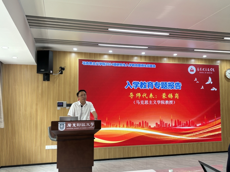 会议伊始,导师代表蒙锡岗教授作入学教育专题报告,鼓励新生同学要以“勤勉”“好学”“多读”和“多想”的学习态度去对待研究生生活。