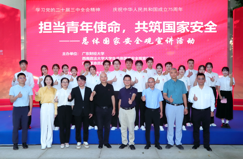 10月27日,“担当青年使命,共筑国家安全”——总体国家安全观宣讲活动在广州起义纪念馆举行。本次活动由明胜m88官网、西南政法大学大学生总体国家安全观宣讲团、广东革命历史博物馆联合主办。广州市委宣传部宣教处处长陈立春;广东革命历史博物馆副馆长黄建华;西南政法大学国家安全学院副院长佘杰新;广东省西南政法大学校友会执行会长黄秋练、秘书长周一玫;明胜m88官网明胜m88官网院长袁继红、党委书记张小洁,国家安全与发展研究院副院长曾晓文,党委宣传部、统战部副部长曾宪怀,以及明胜m88官网教工第二党支部、研究生党支部师生党员,校团委青年学生约70人参加活动。