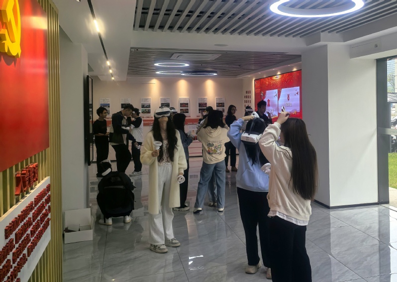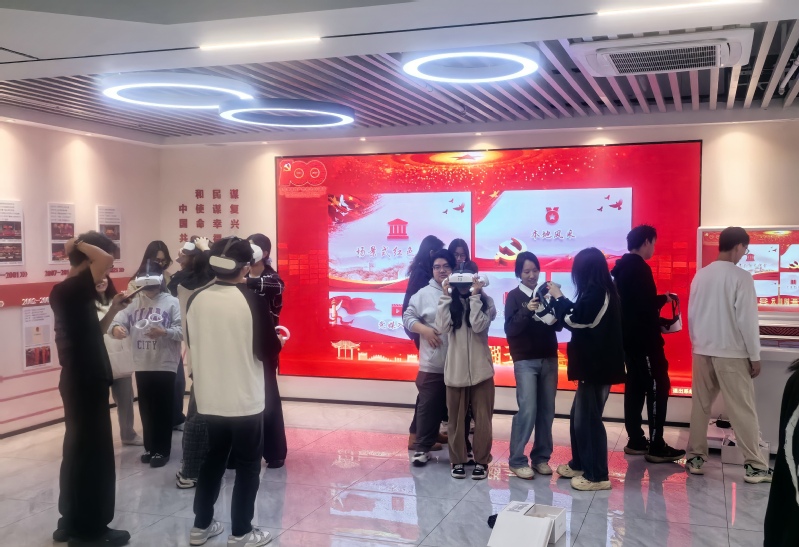 此次课程通过引入虚拟现实(VR)技术,为学生们提供沉浸式的历史学习体验。在老师的指导下,学生们佩戴VR设备,通过线上参观了中国共产党从无到有、从小到大的光辉历程,亲历了无数先烈为了民族解放而英勇牺牲,学生们更加直观地感受到了中华民族从苦难走向辉煌的艰辛岁月。