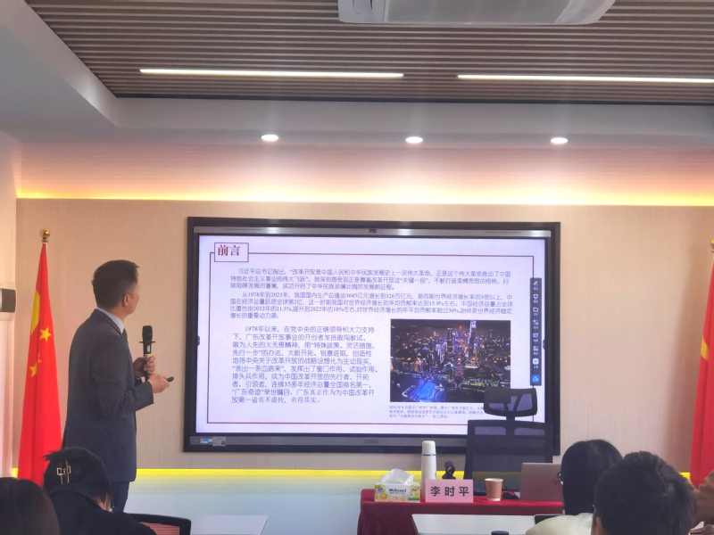 在主题讲座环节,李时平作为广东改革开放的见证者、参与者、记录者、思考者和宣传者,从广东改革开放取得的经济建设成果、体制机制取得的重大突破、伟大实践取得的成功经验,及其对深化改革具有的重要启示四个方面,对广东何以能成为中国改革开放第一省进行了深入剖析。