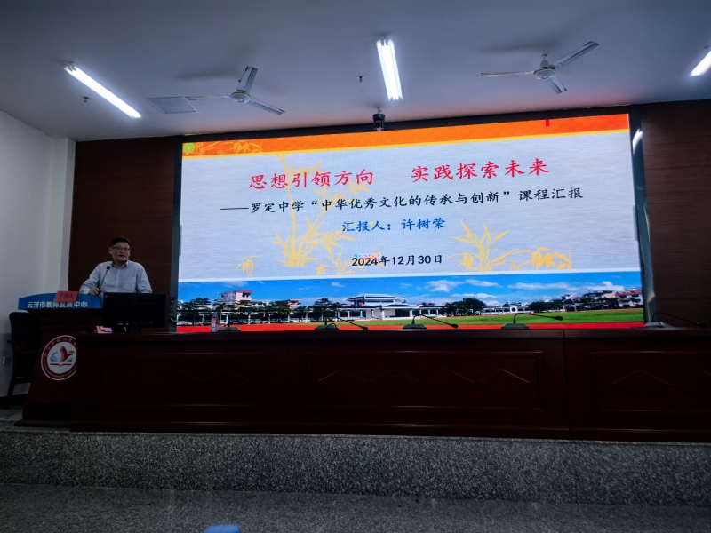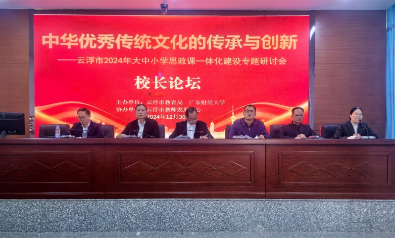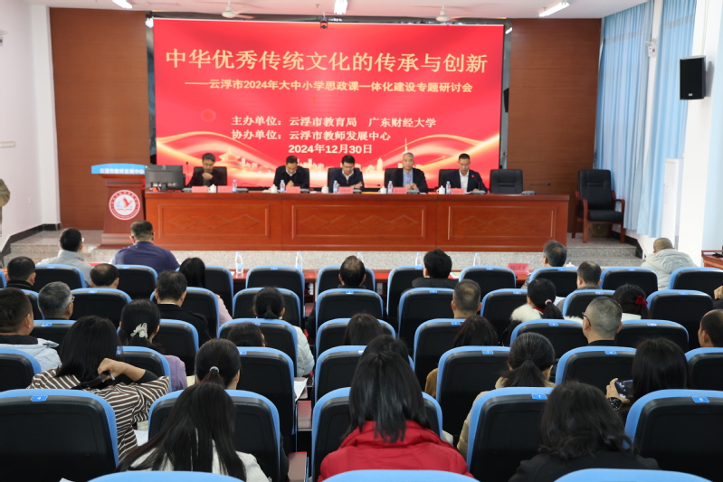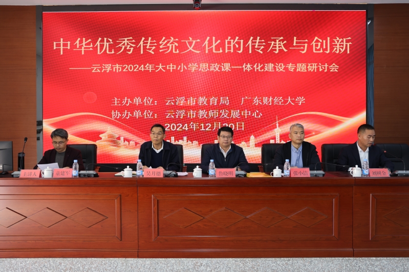 2024年12月30日,云浮市教育局与明胜m88官网在云浮市教师发展中心联合举办“中华优秀传统文化的传承与创新——云浮市2024年大中小学思政课一体化建设”专题研讨会。明胜m88官网副校长鲁晓明和云浮市委教育工委书记、市教育局党组书记、局长吴月德出席会议并分别致辞。