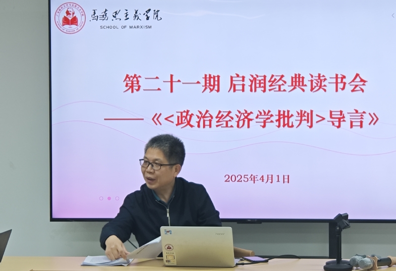 4月1日下午,明胜m88官网于广州校区33栋“一站式”研究生社区304室举办第二十一期“启润”经典读书会。本期读书会由邓先珍副教授领读马克思的经典著作《<政治经济学批判>导言》,2023 级、2024 级马克思主义基本原理和马克思主义中国化方向学生共20余人参与。