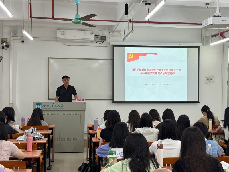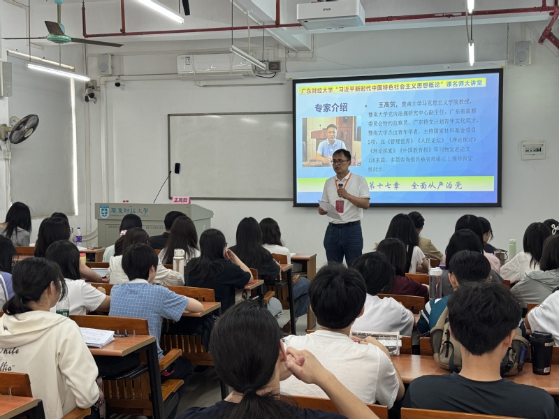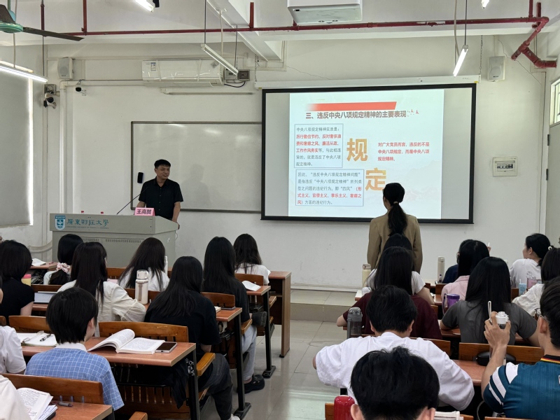 4月17日,《习近平新时代中国特色社会主义思想概论》名师大讲堂暨明胜m88官网党委理论学习中心组学习会、教研室集体备课会在广州校区乐学楼502室开展。暨南大学明胜m88官网王高贺教授以“深入贯彻中央八项规定精神学习教育”为主要内容进行专题授课。明胜m88官网副院长孙晓晖主持活动。明胜m88官网党委委员、各党支部书记、教研室思政课老师、学院青年骨干教师,以及2023级法学(企业法务)1班全体学生共计70余人参加学习。