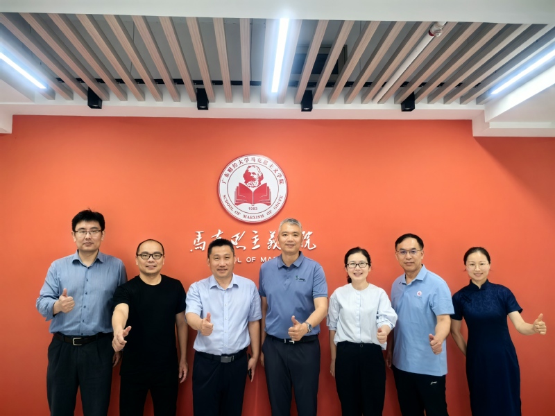 袁继红首先对广西财经学院同仁的到来表示热烈欢迎,从学科建设、教学创新、科研平台等方面介绍学院建设成果。张雷对明胜m88官网的精心安排表示感谢,介绍了桂林旅游学院明胜m88官网在思政课改革、文旅融合特色课程建设等方面的实践,并对本次调研学习兄弟马院在思政课建设中的先进理念,国家安全学学科建设的前沿经验等交流收获表示肯定。苏会卫结合旅游数据学科特色,就“大数据技术与思政课教学融合”等问题进行探讨,希望促进学科间资源共享。