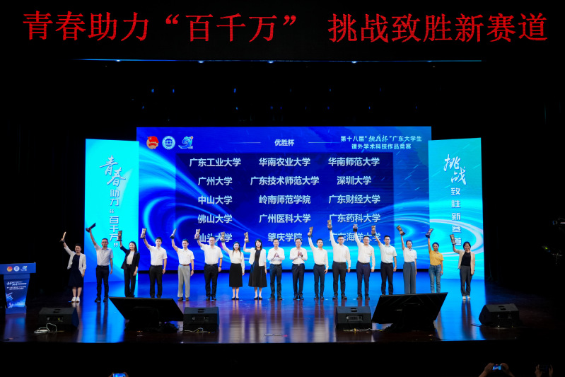 据悉,“挑战杯”广东大学生课外学术科技作品竞赛是最具代表性、权威性、示范性、导向性的大学生竞赛之一。本届“挑战杯”竞赛由共青团广东省委员会、广东省教育厅、广东省科学技术厅、广东省科学技术协会、广东省社会科学院、广东省学生联合会、肇庆市人民政府联合主办。全省161所高校,3.6万件参赛作品,逾20万名大学生参赛,参赛作品和人数再创历史新高。