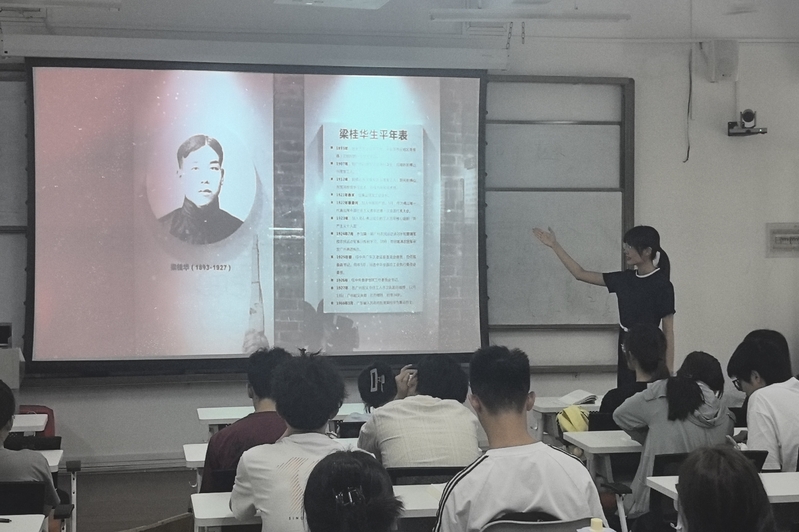 最令师生动容的是周文雍与陈铁军的“刑场婚礼”往事。叶永芳讲解员从两人为筹备广州起义假扮夫妻的细节讲起,述说他们在隐蔽斗争中产生的革命情感,以及被捕后在狱中写下“头可断,肢可折,革命精神不可灭”的铮铮誓言。当讲到两人在刑场上喊出“让反动派的枪声作为我们结婚的礼炮吧”时,课堂内响起阵阵叹息。