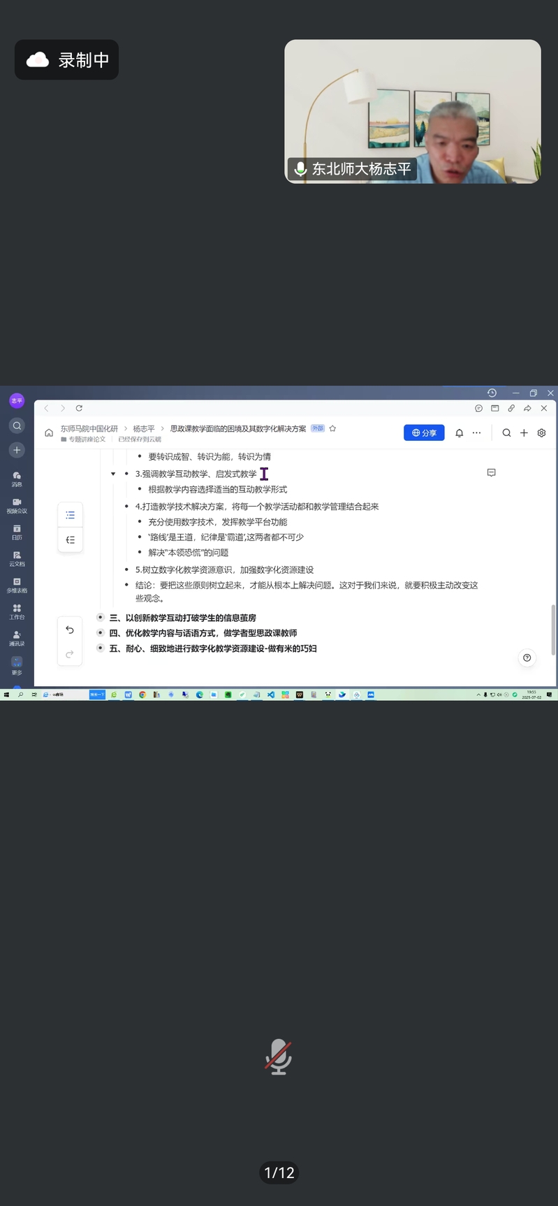 技术工具的应用为思政课教学提供了有力支撑。杨教授推荐使用钉钉、飞书的项目和任务功能,辅助学生系统阅读经典文献,助力制定学习计划和记录学习进度。DeepSeekAI工具的运用,降低了学生对经典文献的理解障碍,解读内容可保存到PDF笔记中供后续学习。艾玛知识库则能帮助搭建个性化知识库,对公众号文章进行收集和分类,为教学和科研提供便利参考。在教学资源的建设与共享方面,杨教授提出通过服务器建立包含视频、电子图书等内容的教学资源库,同时,收集整理央视新闻、抖音等平台的短视频资源,用于课堂展示,既增强了教学的权威性,又提升了教学的吸引力。针对教学中的实际问题,杨教授也给出了相应的解决办法。面对学生过度依赖AI和手机的问题,通过布置任务让学生向AI提问并分享回答,引导学生主动思考,课堂上则明确要求学生放下手机集中学习。对于线上讨论沦为打卡式发言的问题,建议利用AI工具提取学生回答内容,生成个性化学习图谱。