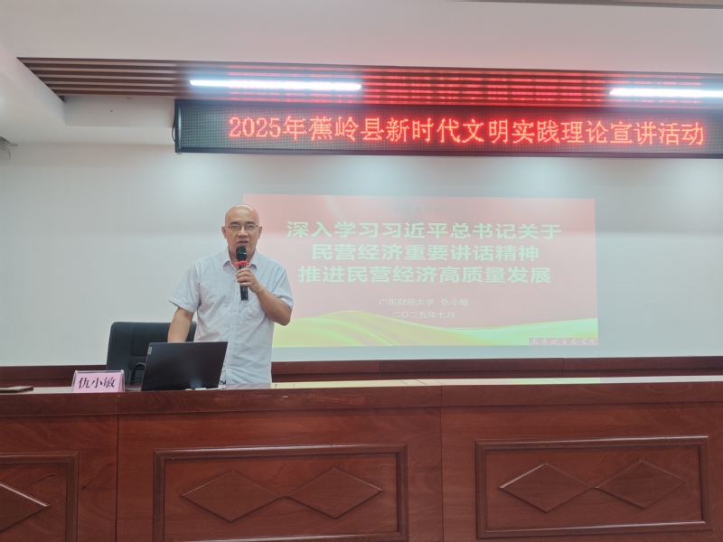 紧扣国家大政方针和地方发展实际,宣讲团将党的创新理论转化为清晰易懂的实践指南。在平远县仁居镇新时代文明实践所,易刚明老师聚焦“总体国家安全观视域下的意识形态安全”,系统阐释了总体国家安全观的丰富内涵、核心要义及时代价值。他紧密结合历史脉络与现实挑战,深入分析了意识形态安全在国家安全体系中的极端重要性,剖析了新形势下可能面临的风险挑战,为基层干部维护政治安全和社会稳定提供了清晰的理论遵循与实践策略。针对民营经济发展议题,仇小敏副教授在程江镇大塘村新时代文明实践站围绕“深入学习习近平总书记关于民营经济的重要讲话精神,推进民营经济高质量发展”,与当地民营经济企业家和干部群众展开深入交流。他从民营经济在中国的发展历程讲起,剖析习近平总书记重要论述的理论内涵,阐述民营经济高质量发展的现实必要性和面临的突出问题,并给出实践路径。这场交流为民营经济发展提供了新思路,助力企业在时代浪潮中稳健前行。
