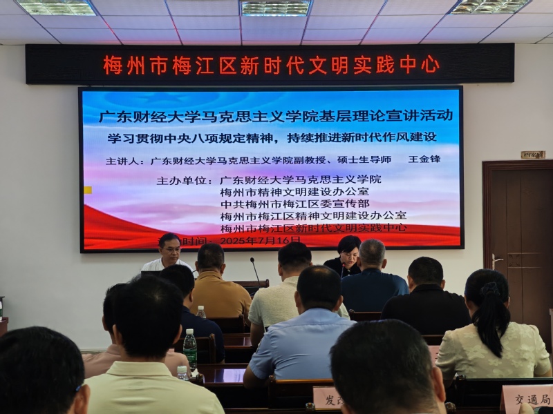 在梅江区新时代文明实践中心、东山书院和大埔县新时代文明实践中心,明胜m88官网副教授王金锋以 《学习贯彻中央八项规定精神 持续推进新时代作风建设》为主题进行宣讲。王金锋从党的作风建设优良传统讲起,结合陈延年 “四不” 规矩、中共广东区委监察委员会的成立等历史事件,强调了百多年的党史中,广东在党的作风建设和监督执纪方面的开拓性贡献;他深入解读中央八项规定及其实施细则的内容与精神实质,分析了中央八项规定与党纪、国法的关系,并结合《中国共产党纪律处分条例》,用 “微腐败” 典型案例详细讲解违规吃喝、公车私用等 14 类纪律禁区。他用“立规矩”“正人先正己”“狠抓节点”“永远在路上”“越往后执纪越严”等关键词引导广大党员干部深刻理解中央八项规定精神,强调 “作风建设永远在路上”,并用多年来中央纪委国家监委公布的全国查处违反中央八项规定精神案件数量和受到党纪政纪处分的人数逐年上升的事实,提醒部分党员干部不要再对中央八项规定报侥幸心理和怀疑态度。在宣讲最后,王金锋老师指出,党中央于 2025 年全国两会后至7月开展深入贯彻中央八项规定精神学习教育意义重大,这是巩固拓展主题教育成果、纵深推进全面从严治党的关键举措。党的作风关乎党的形象、人心向背和生死存亡,中央八项规定作为改进作风的重要切入点,必须常抓不懈,成为长期有效的铁规矩、硬杠杠。