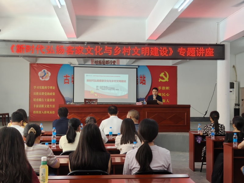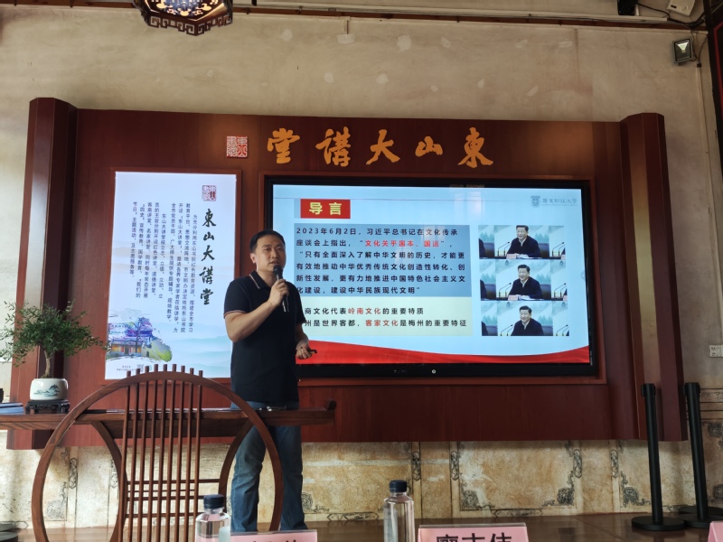 在东山书院、城北镇上村村新时代文明实践站,明胜m88官网,明胜m88官网廖志伟博士开展以《深挖粤商文化 推进新时代客家文化建设》为主题的宣讲,从粤商文化历史脉络切入,解析粤商“敢为人先、务实开拓”的精神,并展示客家商人“家国为魂、四海为商”的精神特质,提倡在新时代客家文化建设中弘扬“变革创新、实业兴邦”的粤商精神,传承“心怀家国”的粤商情怀,延续客商崇文重教的传统。另外廖志伟博士还在大埔县湖寮镇古城村新时代文明实践站开展了主题为《新时代传承弘扬客家文化与乡风文明建设》的宣讲。他的宣讲详细梳理了粤商文化和客家文化传承与发展的联系与路径,为新时代乡风文明建设提供了历史借鉴。