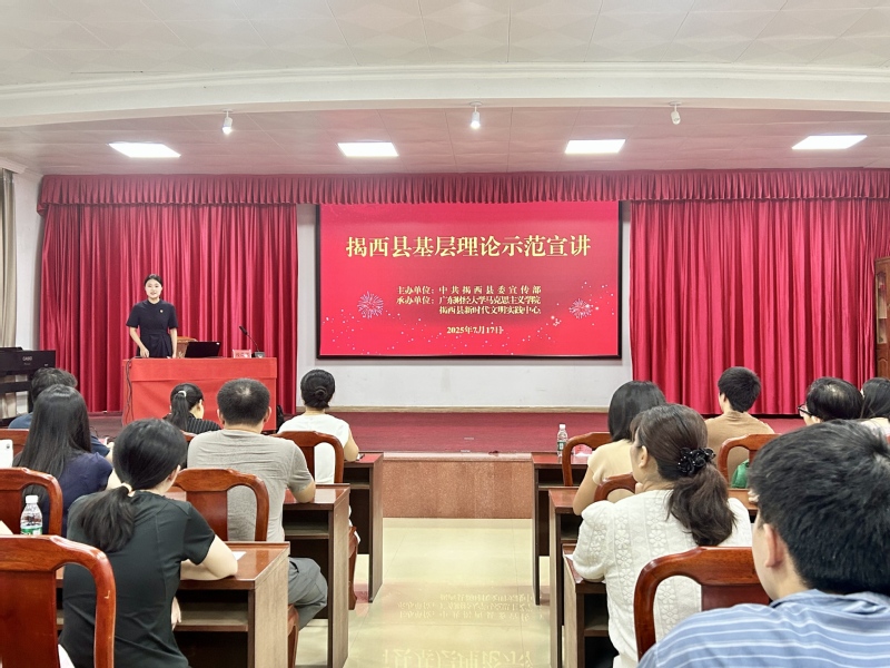 宣讲团致力于通过校地联动实现协同发展,构建了“高校理论供给+地方实践反哺”的双向赋能模式。在提升基层理论素养方面,宣讲团开展“基层宣讲技巧”培训,从宣讲稿设计、声音掌控、受众心理分析到“乐讲、巧讲、深讲”的方法传授,系统提升当地“百人宣讲团”能力,为地方培养优秀的基层理论传播骨干力量。在深化校地合作机制方面,揭东的民营企业党建、榕江生态治理案例,为高校理论研究提供鲜活素材;梅州客家文化、揭阳红色资源成为高校思政教育的生动教材。揭阳当地8位基层宣讲员与专家学者同台宣讲,学者理论与基层实践充分融合。在助力地方发展方面,宣讲团深入阐述了总体国家安全观、客家文化保护路径、民营企业党建案例等,为当地提供了宝贵的参考价值。例如,对惠来“千年古城”靖海镇推动文化赋能“百千万工程”、平远县进一步加强基层干部意识形态安全防范等方面提供参考。
