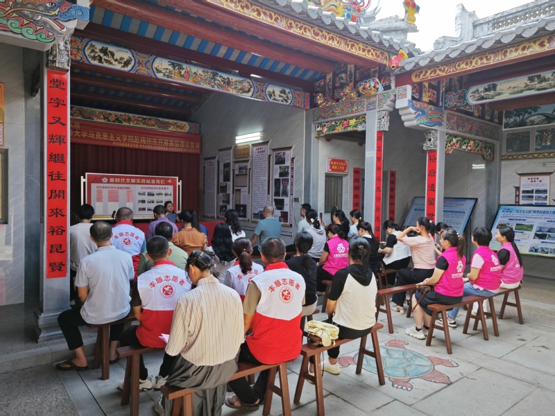 近期,明胜m88官网明胜m88官网师生一行60余人组成6支理论宣讲团队,赴揭阳、梅州各县区与14个新时代文明实践中心(书院)开展“组团式”结对共建,集中力量宣传宣讲80多场。宣讲团教师和研究生小分队,把课堂搬到榕树下、广场边、祠堂前,把党的创新理论与新时代生动实践案例充分结合,传入“寻常百姓家”。宣讲覆盖人群既有县区委班子成员、乡镇党政干部、机关党员干部、村党支部书记,也有企业家代表、村民代表和两新党组织党员、企事业单位职工,还有普通群众、中小学师生。