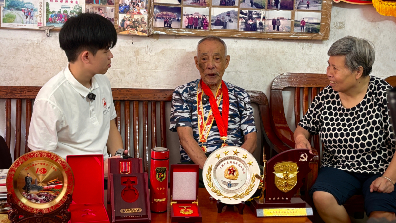 薪火传承实践团赴罗定市泗纶镇采访94岁老兵沈金水,共同追忆起那一段烽火连天的岁月。老人展示革命军人证明书、立功证明书、抗美援朝纪念章,向实践团亲述战斗经历:在抗美援朝期间,他参加过全歼美军第31团级作战队(北极熊团)的长津湖战役;他第一个发现美军飞机残骸,活捉美军飞行员;他加入敢死队,和队友们一起完成了炸毁水门桥的壮举。老兵对历史的珍视,对荣誉的守护,对年轻一代的殷切目光,都在无声地传递着力量。实践团成员们倾听沈爷爷的讲述,触摸那些带着历史温度的物件,深刻感悟到传承红色基因,不仅仅是铭记过往,更是要将那份忠诚、无畏与坚韧,融入新时代青年脚踏实地、爱国奉献的行动中。
